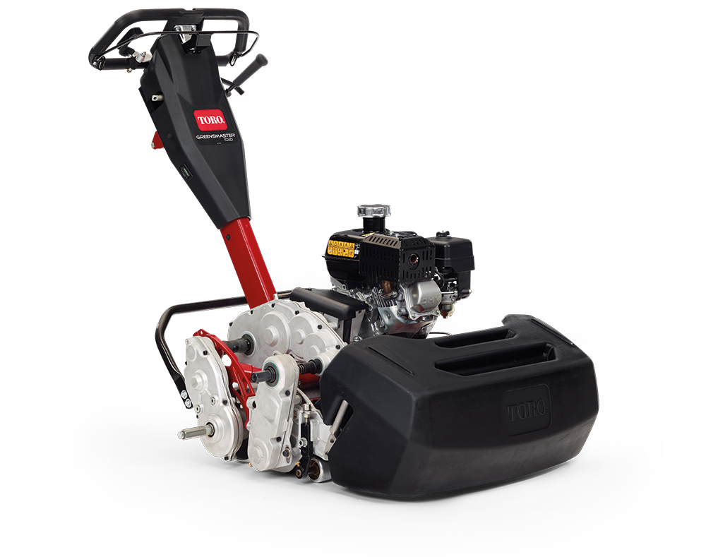 When asked to try a new mower, changes have typically been made, but a complete redesign is rare. With its new Greensmaster range however, Toro is in the process of revamping its pedestrian greens mowers and the new GR1021 walk behind model we look at here is new from the tip of its handle to its driveline and chassis. All that remains the same are the patented DPA cutting units, but even that has a modular build to allow the driveline and chassis to be removable for eased servicing.